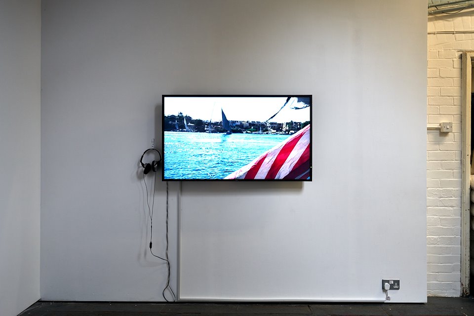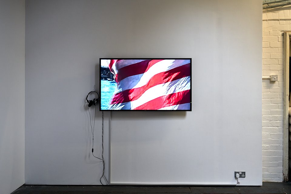 Does Anybody Leave Heaven “US Flag in Aswan” (Commissioned video piece by Karim Elhayawan) Installation Shot – Primary Space, Nottingham England 2019