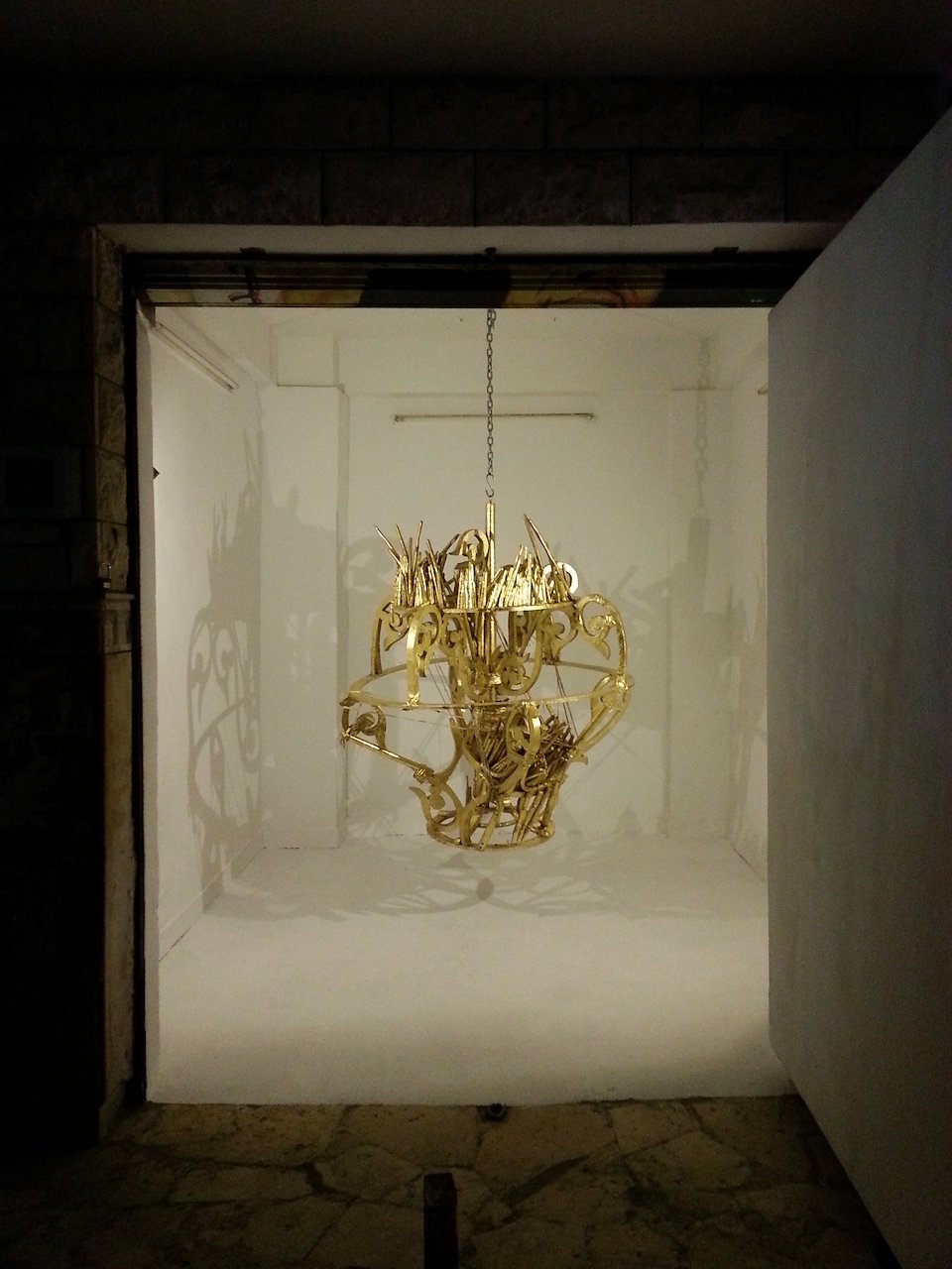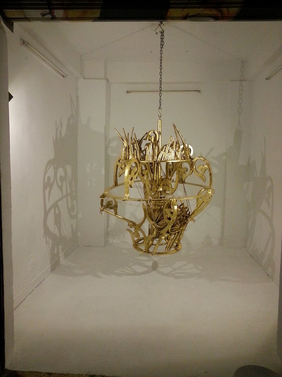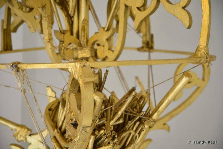 Black outs are a frequent occurrence in modern day Egypt. Candles are burned to create light. Over a period of time the remnants of candles piling up resembled dilapidated and dysfunctional structures. The loss of electricity and the image of people substituting that loss created a metaphor for colonial legacies that produce new modes of hierarchical power dynamics. These structures symbolized mutated forms of power mirroring and imitating old social constructs of colonialism, revealing that in the absence of colonial administrations, people generate their own. In this body of work, sculptures of candelabras and chandeliers are created out of found objects and materials from local spaces resembling Baroque design. This style of decor is used to invoke the imagery of European decadence at the height of European conquest. This series seeks to recognize the cyclical nature of power that occurs at the expense of the “lesser people” they create.