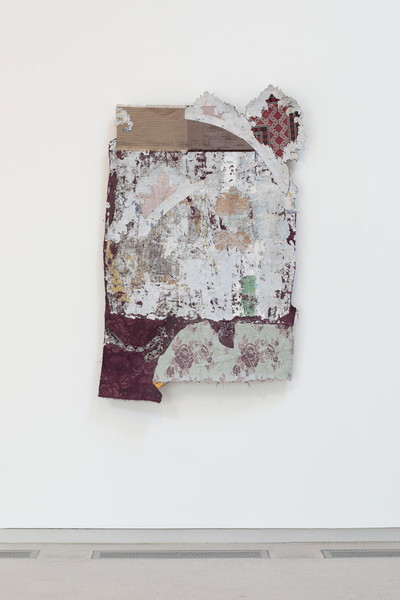 This latest body of work, Ard El Lewa, explores themes such as transnational identity, migration and borderlessness. The mixed media pieces are composed of an assemblage of cloth fragments painted with acrylic wall paint and later distressed and faded. They visually quote tapestry traditions found across the Silk Road countries and beyond. Formalistically the pieces recall various decorative motifs, architectural elements and artistic references shared by a variety of cultures despite the modern constructions of insular so-called authentic national cultures. The works, created in one of Cairo’s popular yet marginalized urban areas, stem from my personal immigrant experience. Ard El Lewa is a collection of works about ambiguity, in-betweeness, and the fallacy of authenticity as a governing concept for identity construction.